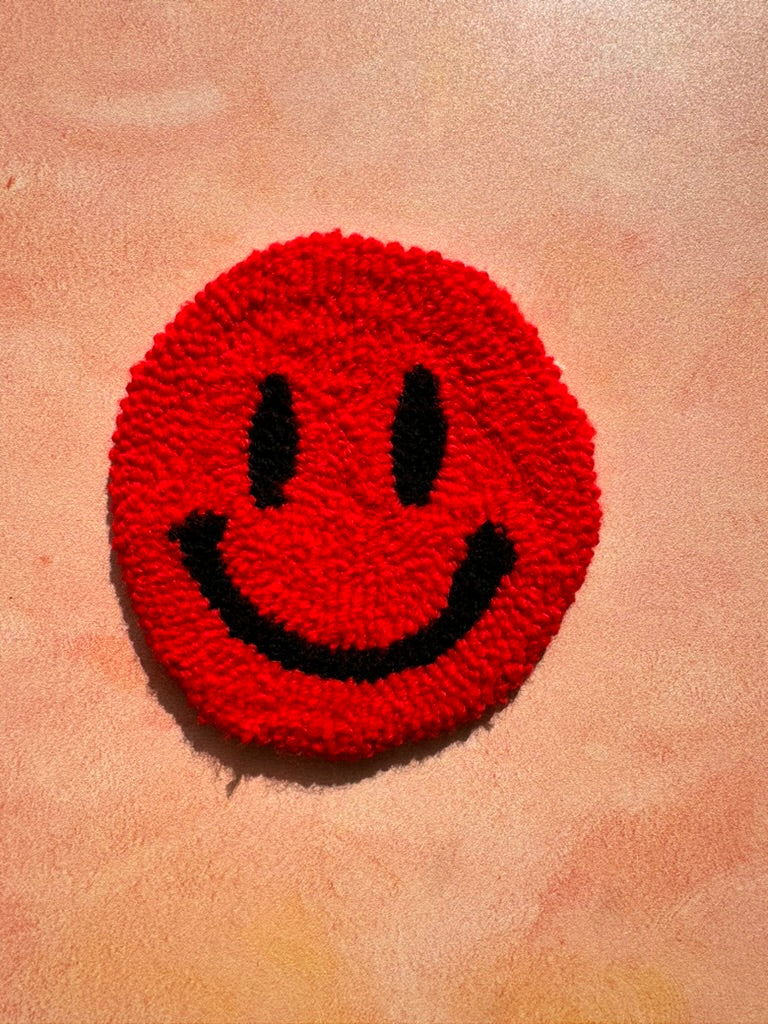 Smiley Face Mug Rug - Punch Needle Coaster