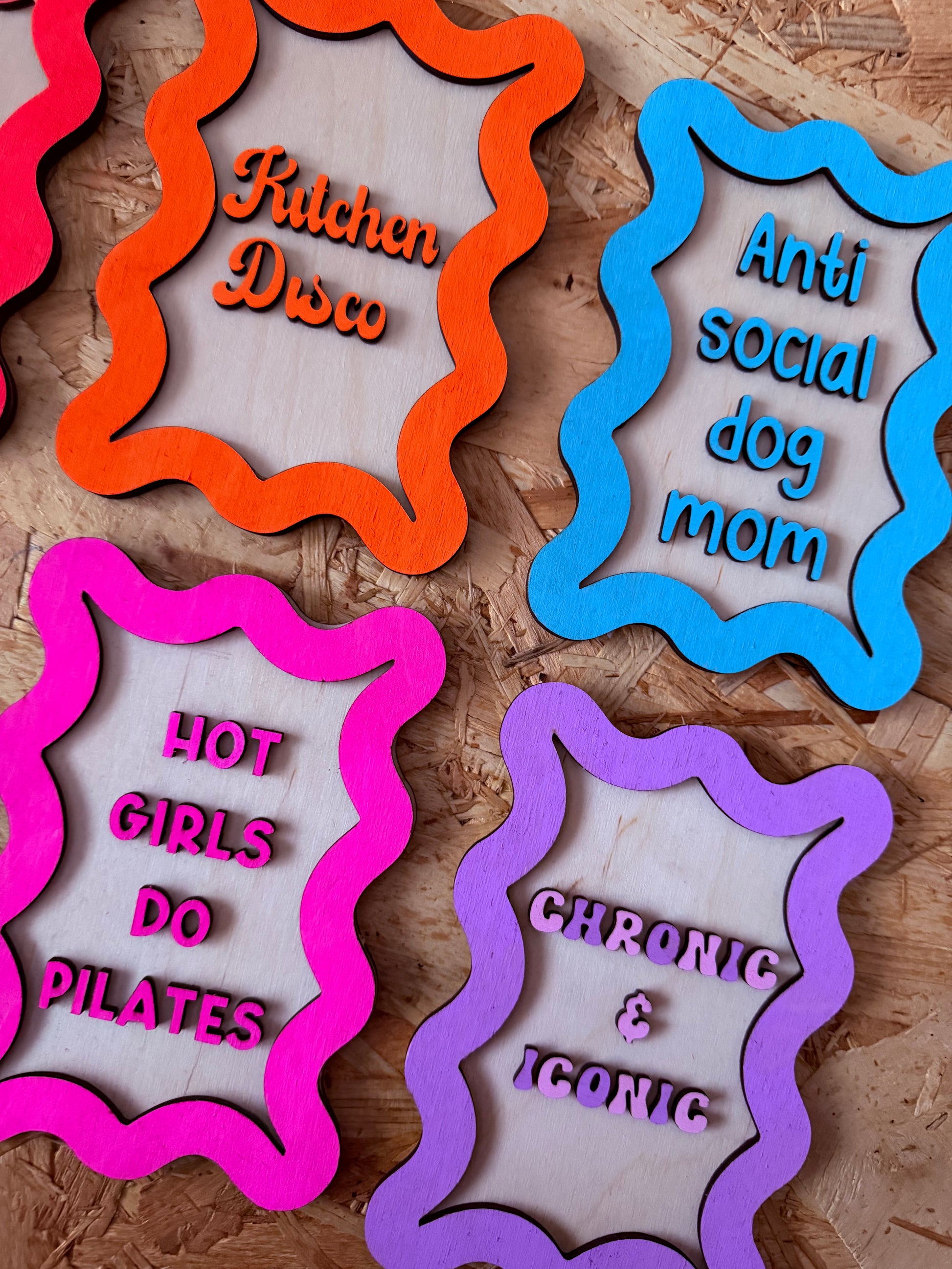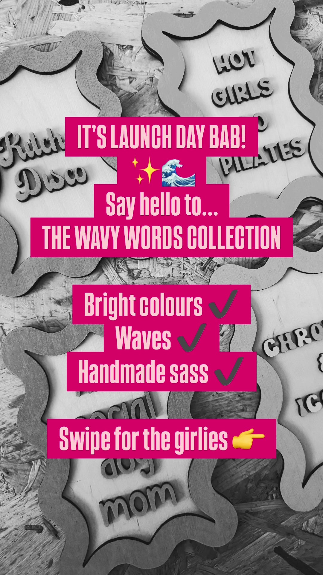 Bright, bold and unapologetically funky β the Wavy Words Collection is a series of handmade double-wavy wooden signs released in limited drops.